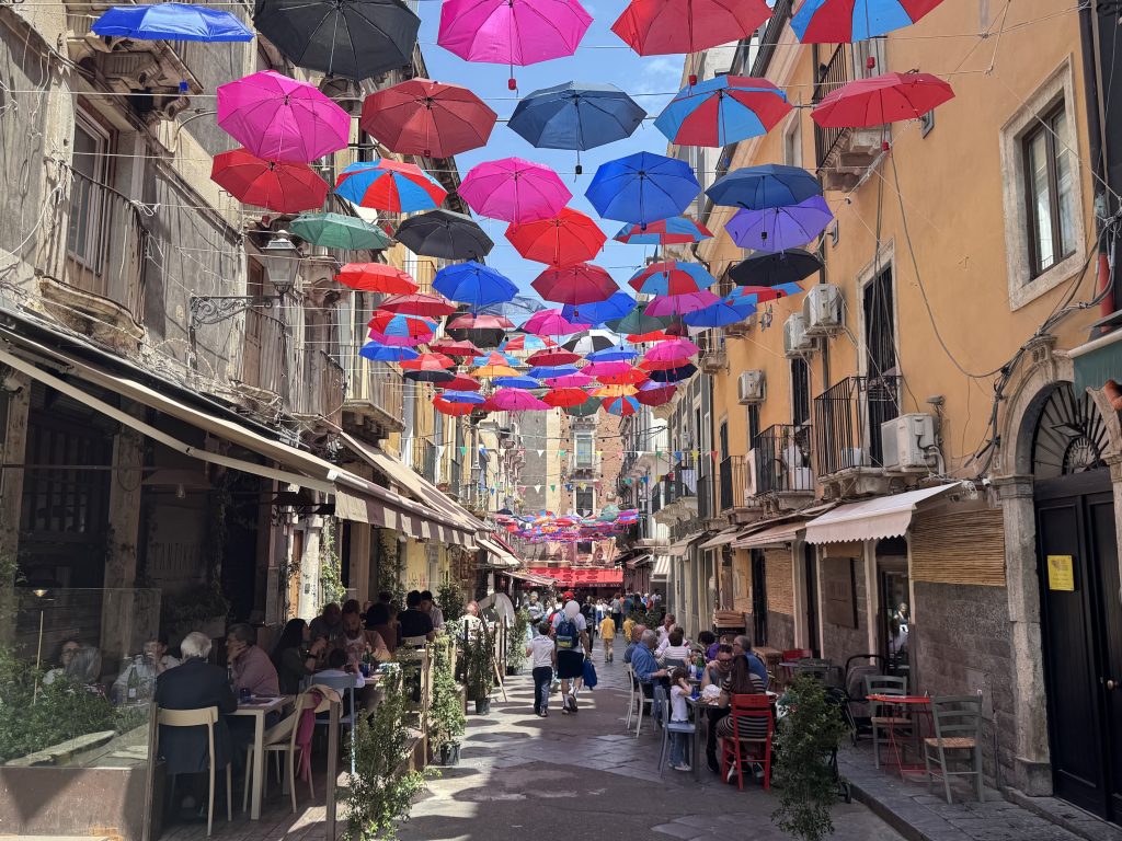 Next stop: Catania—and here we talk about perfect timing. We arrived smack in the middle of its annual marathon. No traffic. No honking. Just runners, music, food stalls, and a whole city breathing freely. We strolled, snacked, and let Catania surprise us with its laid-back, festival vibe.