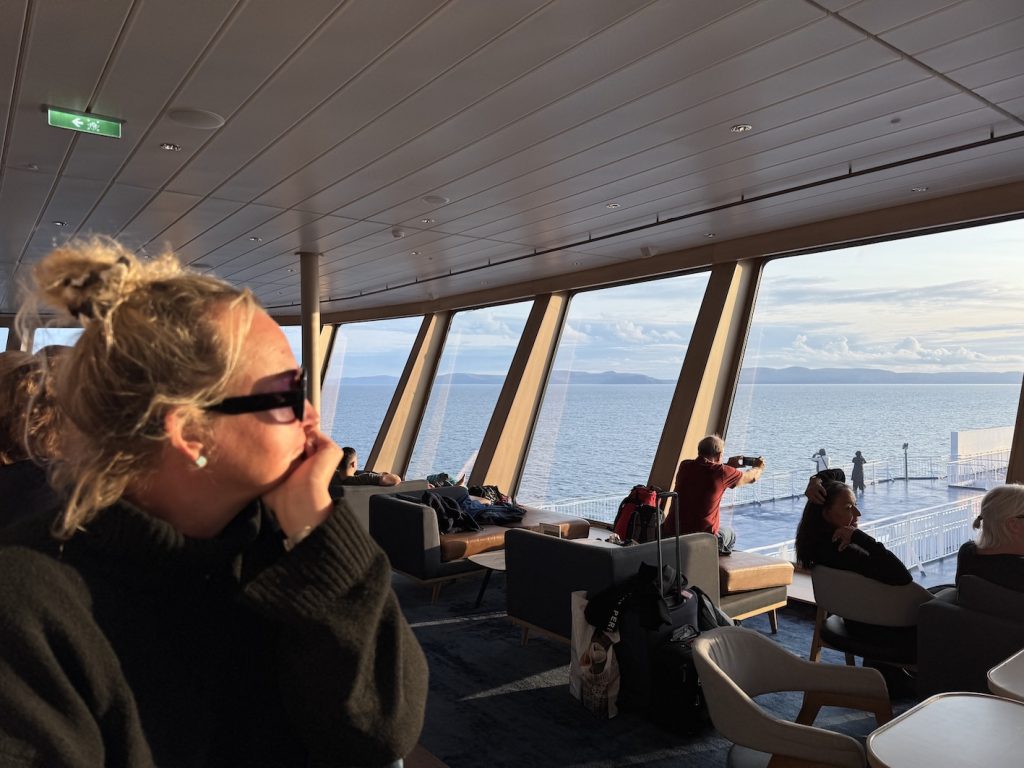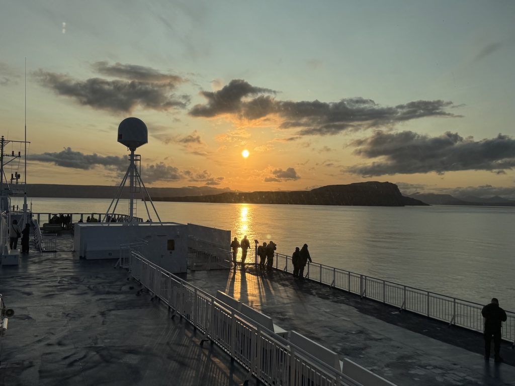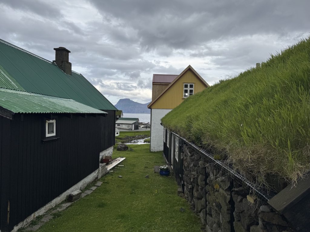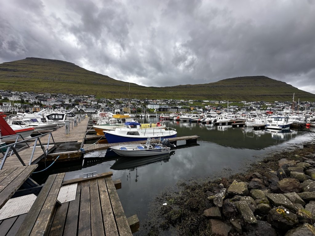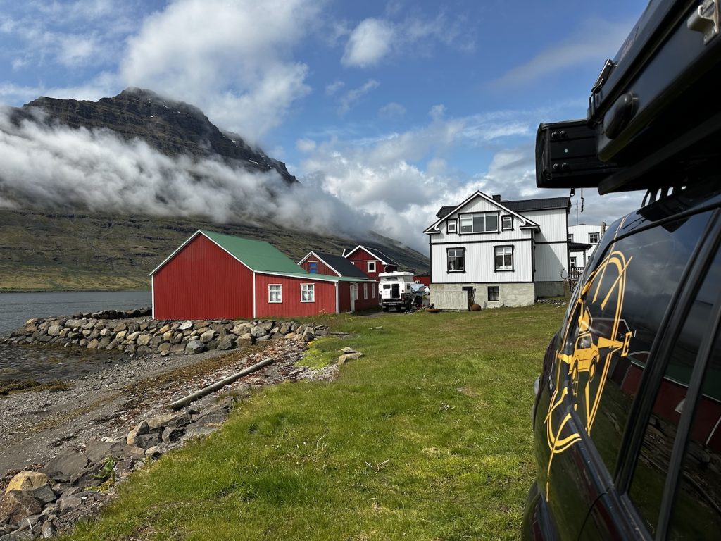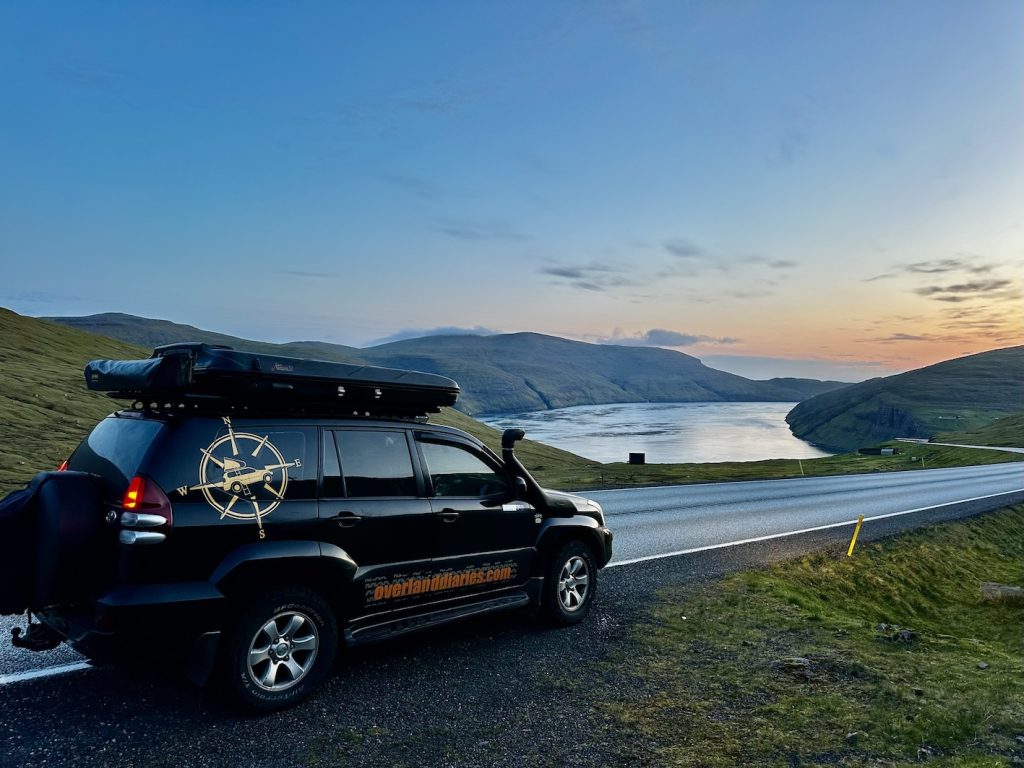 We arrived in Tórshavn close to midnight—11:30 PM to be exact—and yet the sun still hung low in the sky. Landing here with our trusty overland vehicle, Voukefalas, our Land Cruiser, felt less like entering a country and more like stepping directly into a postcard. The air was crisp, the landscape dramatic and strange, and even the sky seemed to hang heavier. Our first challenge? After disembarking, we drove straight to Tórshavn’s campsite, only to be greeted with, “Hello Reservation? No! Sorry, fully booked.” With no backup plan, we turned north. We drove through tunnels carved into mountains, twisting along narrow roads that pass through cliff-hugging villages. Passing houses with grassy turf roofs, looked more like sets from Viking movies than modern dwellings.