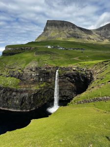 Our racing with time in a Timeless Place had started. With only 72 hours in the islands, we packed our days to the brim. From the village of Viðareiði, with its jaw-dropping setting between ocean and mountain, to a quick lunch of traditional fish and chips in Klaksvík, every stop felt like a stolen moment. We wandered through Gjógv, a tiny hamlet nestled between cliffs, and stood before the tumbling waters of Fossa, the highest waterfall in the Faroes.